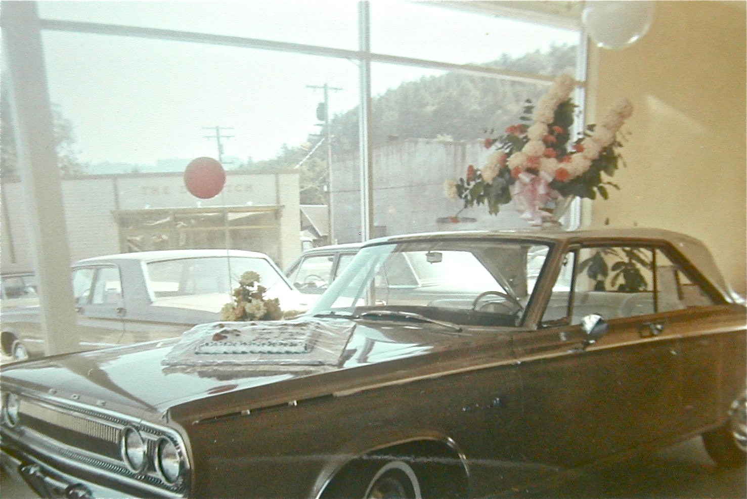 In this second picture of the dealership’s grand opening in 1965, you can see the Dispatch outside the showroom window.