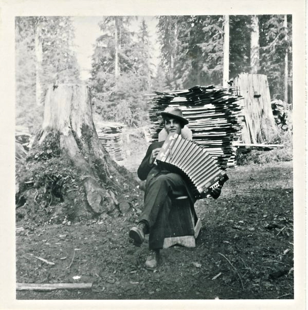 I don’t know anything about this picture, but I like it. Knowing that Roudof Kobb was supplying some music during what looks like a shingle-making operation, makes me feel like the loggers had a cultured side as well.