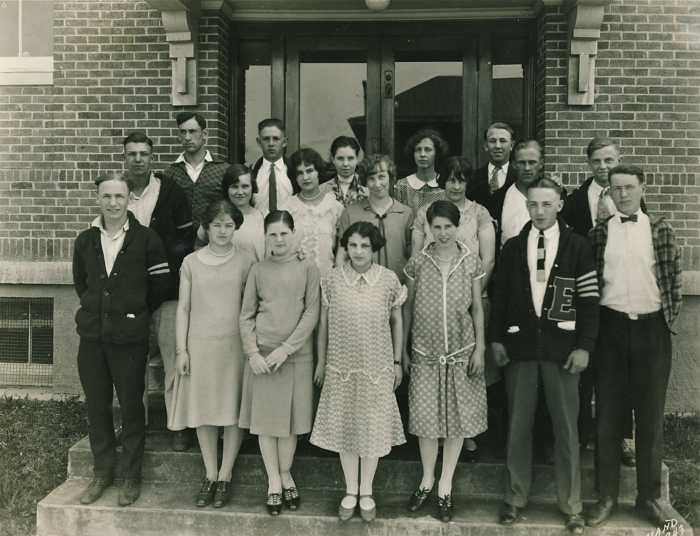 Back Row (left to right): Aleda Jacobson (Jordon), Bill Smith, Fred Boyles, Kenneth Burgess, ??, Ester Neilsen (Larson), Casey Swanson.
