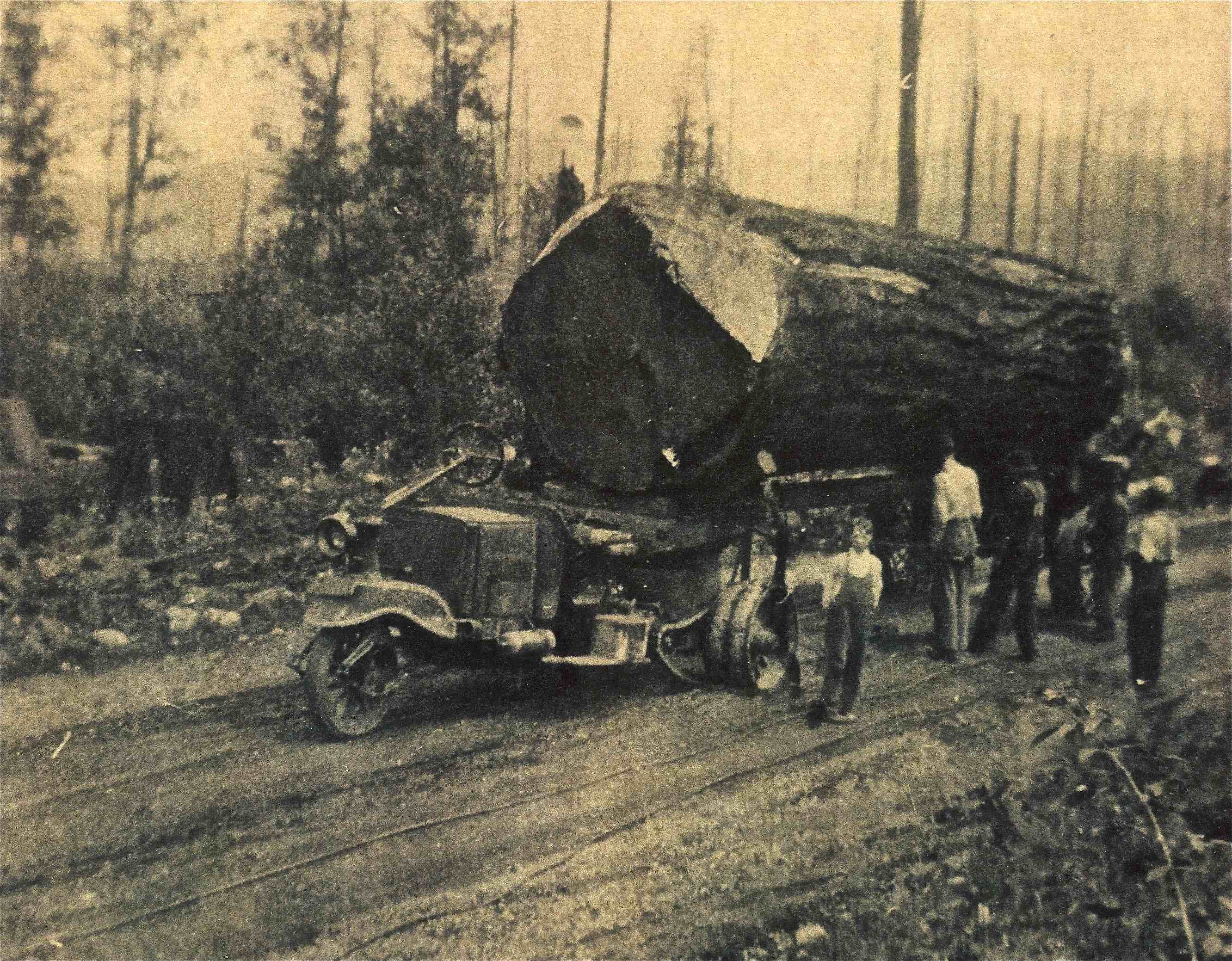 Logging trucks started showing up in the early 1900’s. I don’t know anything about this particular model, but it shows up on other history sites, like one about nearby logging in Sammamish.
