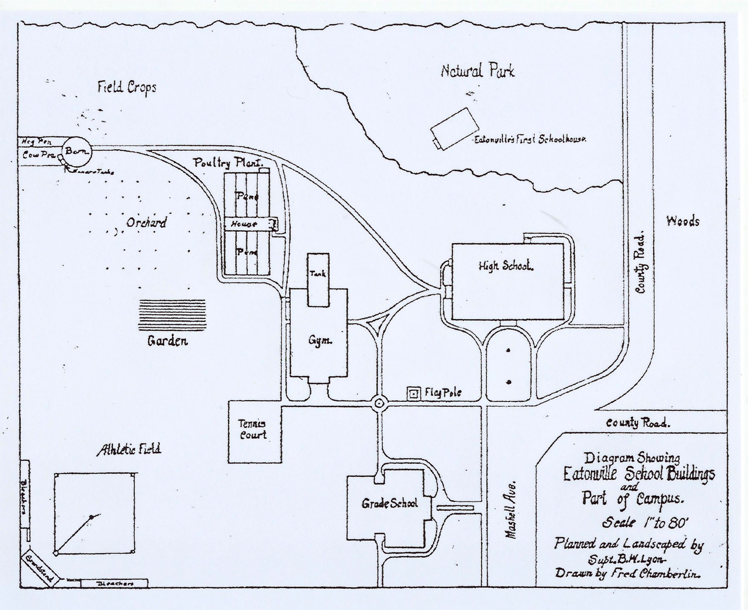 Eatonville School plan (ca. 1916)  by Supt. B.W. Lyon and drawn by Fred Chamberlin