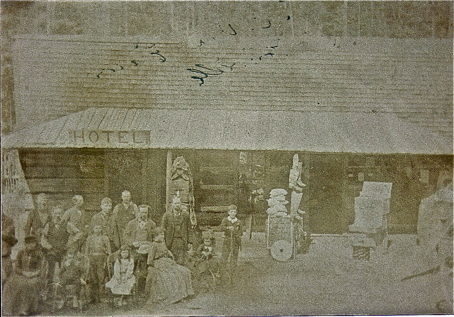 My father built and ran the first store, which for years as an old landmark. Meals were served and a bed could also be had. My father also built the first hotel, across the road from the store and he named it The Tourist Hotel. My Mother had charge of the hotel until it was destroyed by a fire.