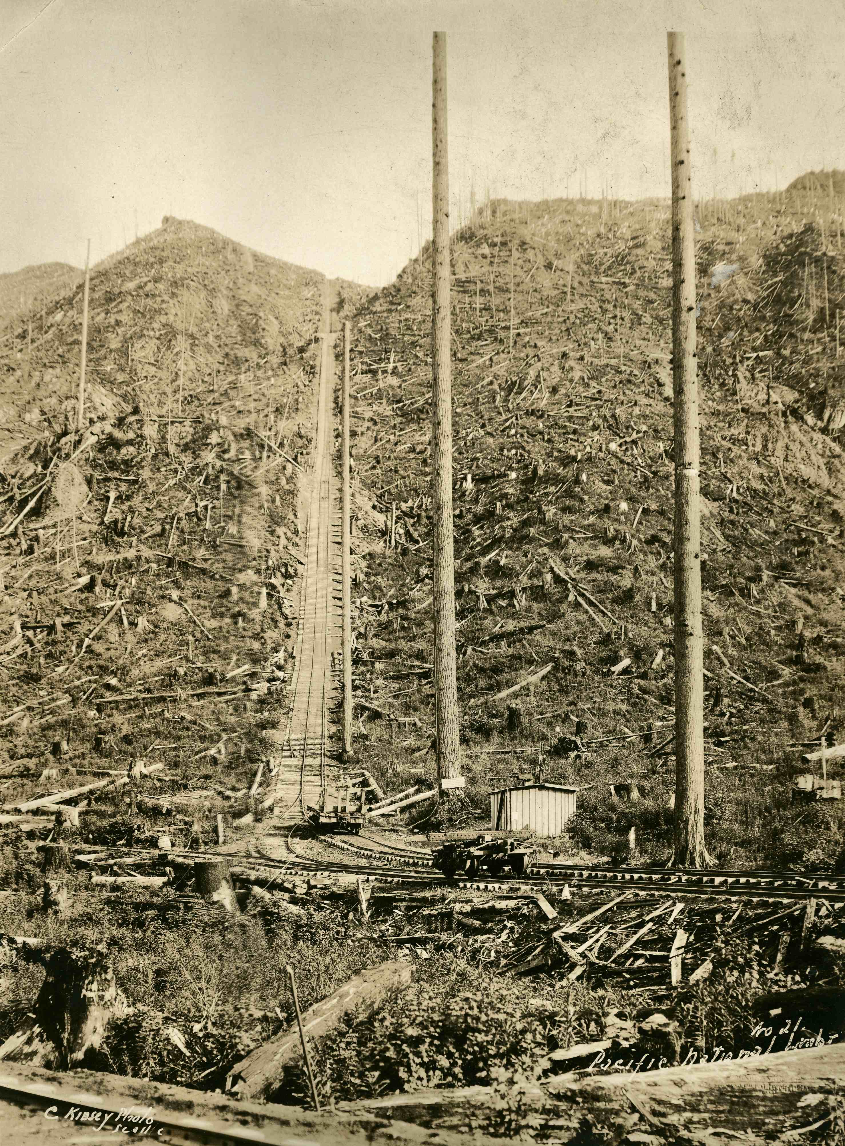 This image was recently donated to the Eatonville Historical Society. It was taken by photographer C. Kinsey in August 1926 of the “Big Incline” at Pacific National Lumber Company in National, Wash.