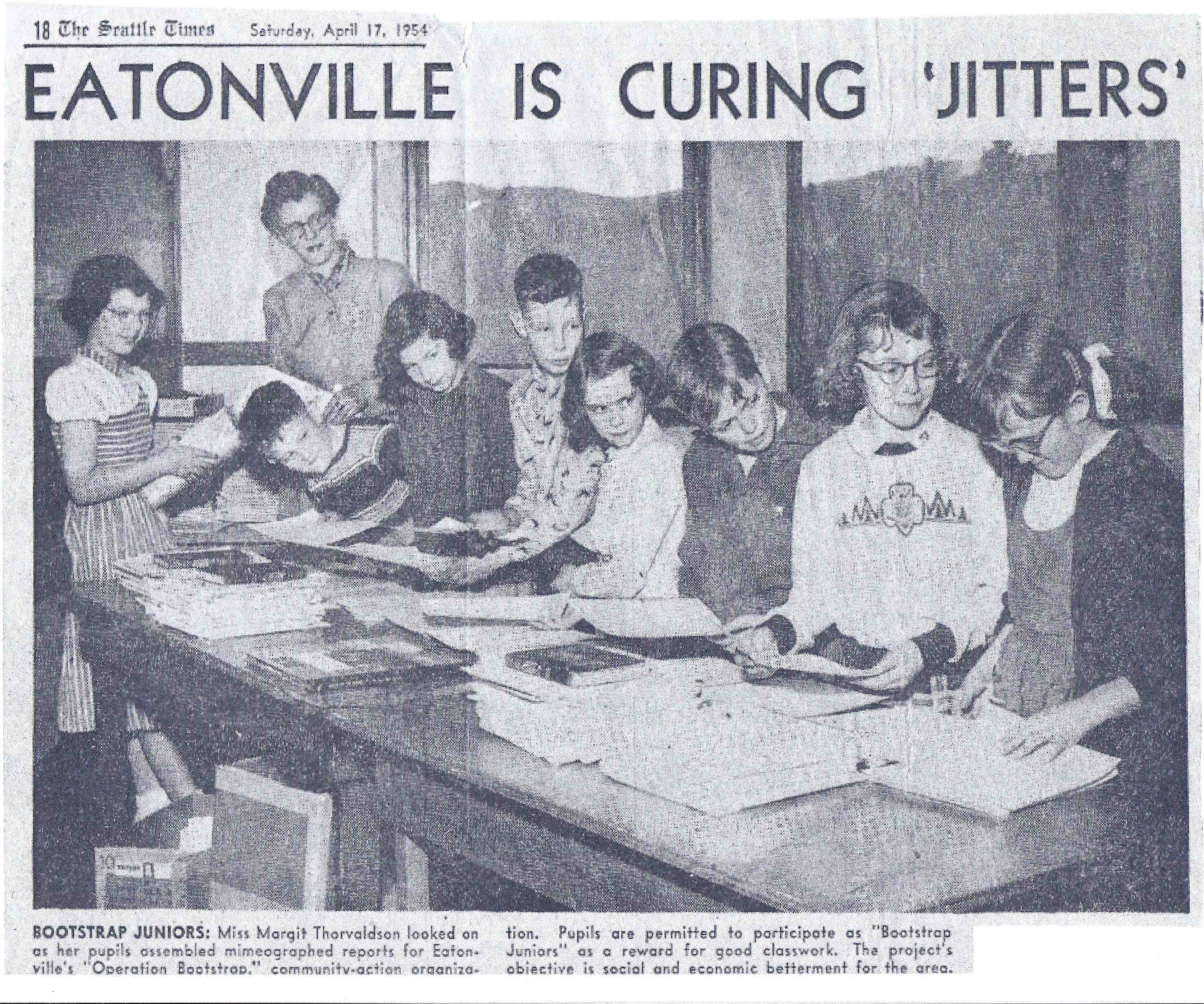This photo and caption on Bootstrap Juniors appeared in the April 17, 1954 issue of the Seattle Times.