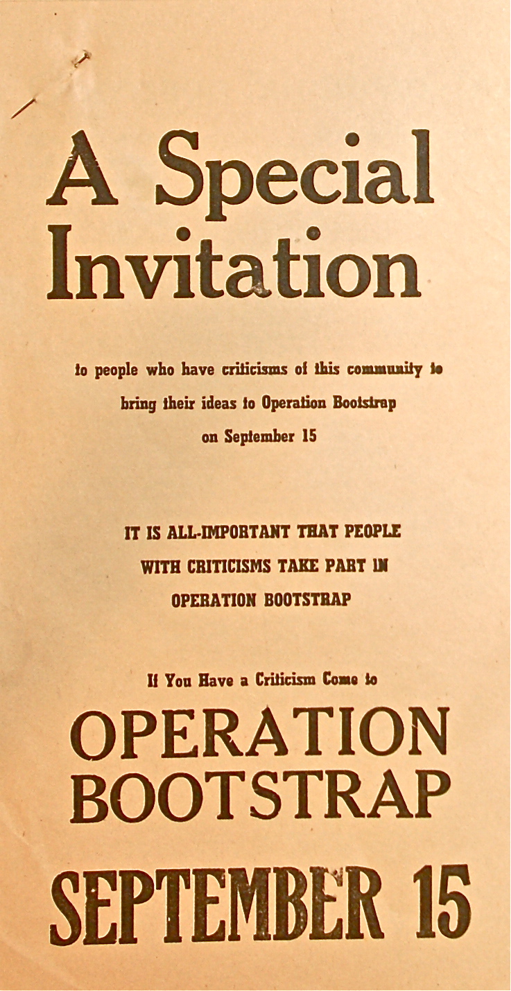 On October 4, 1953 the News Tribune ran an editorial on the project, when 513 people out of the 1,048 residents turned out for the launch of Operation Bootstrap.