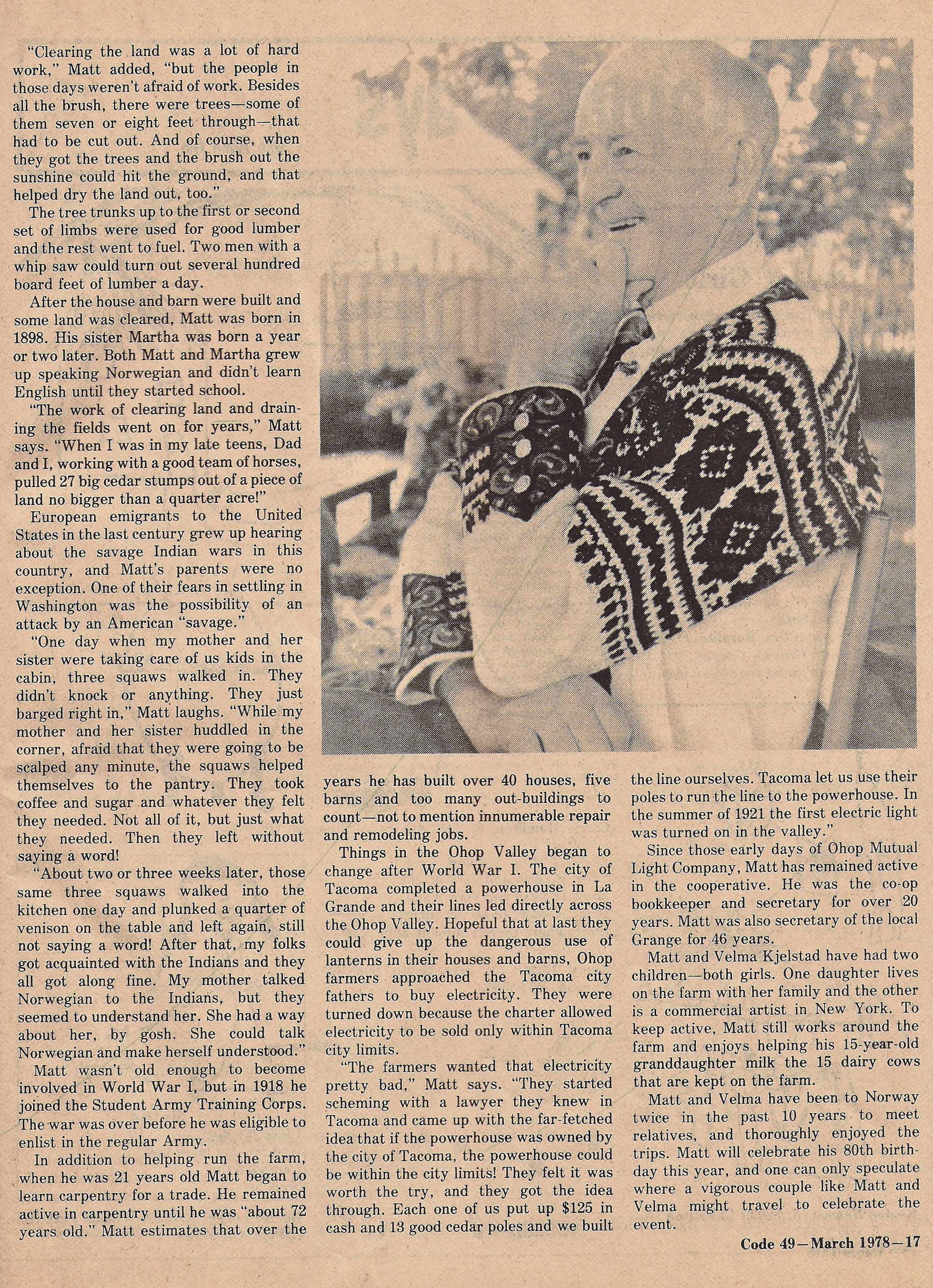 This article about Matt Kjelstad appeared in the Ruralite in 1978.