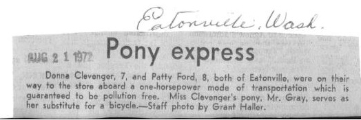 Donna Clevenger and Patty Ford are off to the store on their pony, Mr. Gray. The image definitely captures the feel of the 1970s in Eatonville.