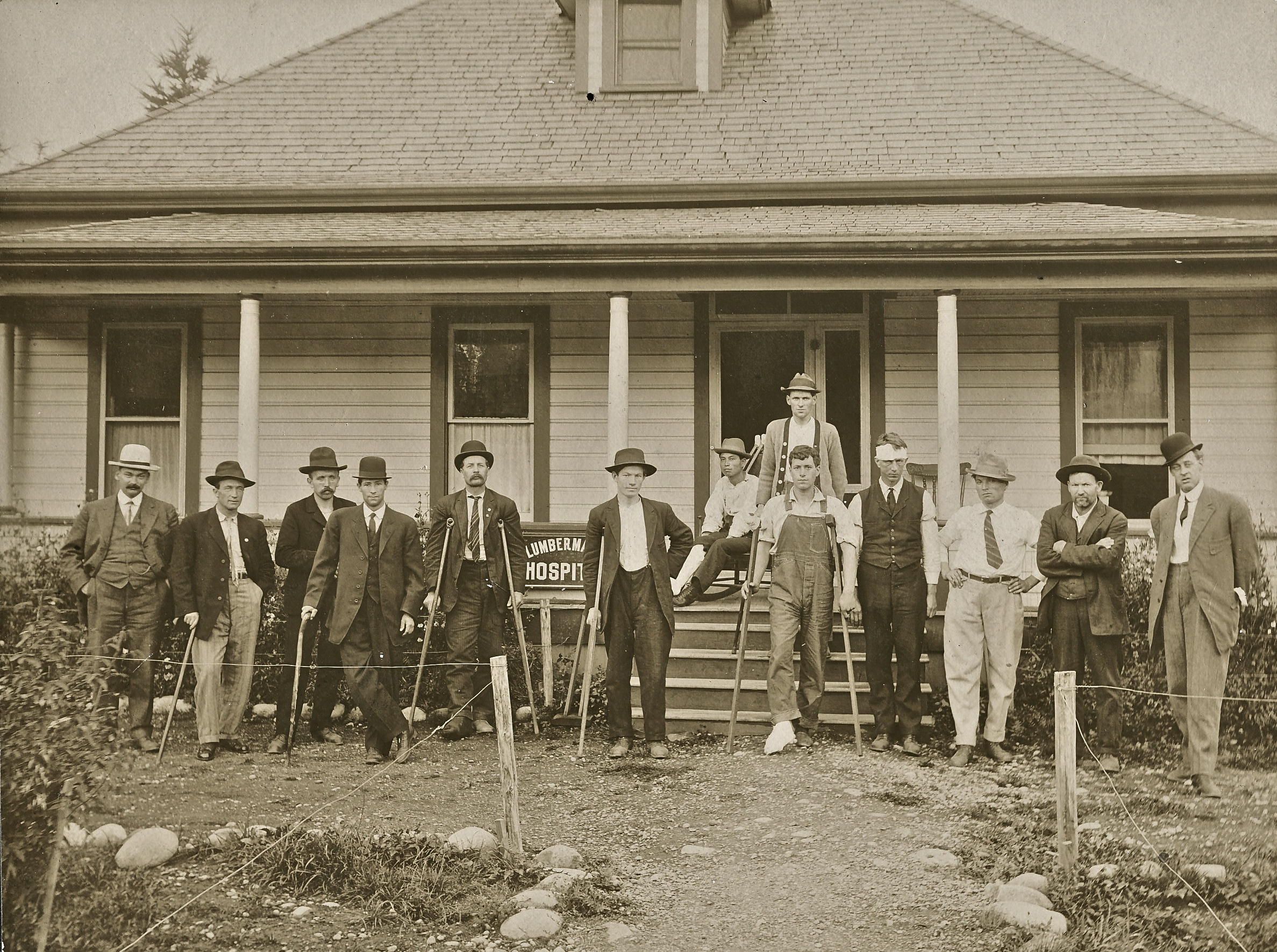 Dentist David Cook, third from the right, in front of the Bridge Hospital in Eatonville