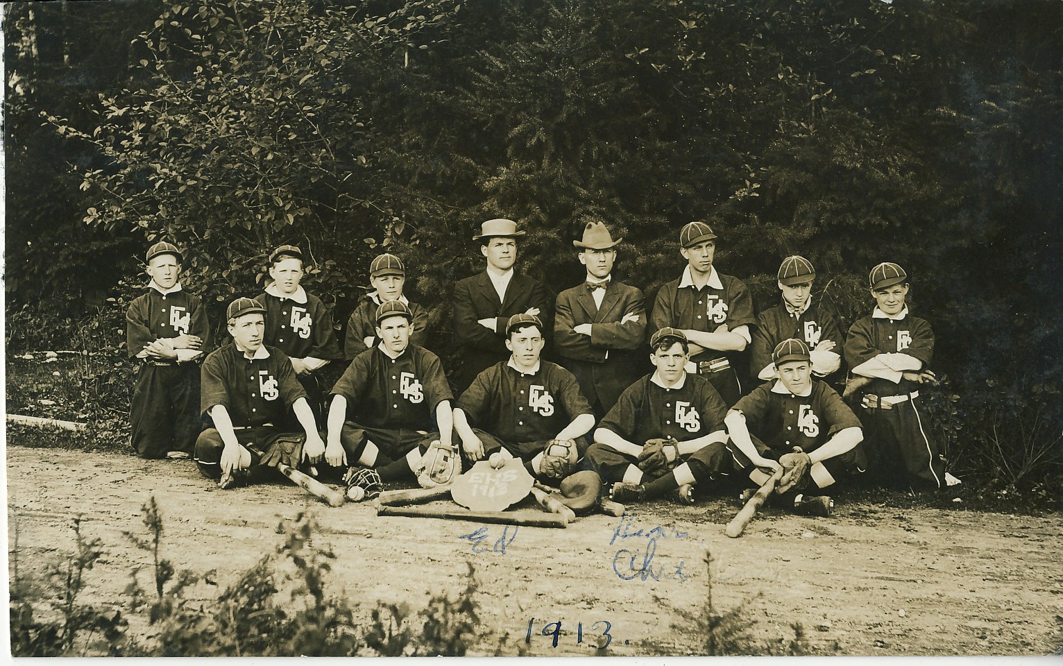 Eatonville high school has been playing baseball for over 100 years. Here’s a shot of the 1913 team, with coach B. W. Lyon and Mr. Hollingsworth. Clarence Williams is far left on the front row. Also in the front row are Ed Christensen (center) and H. Christensen (right of Ed).