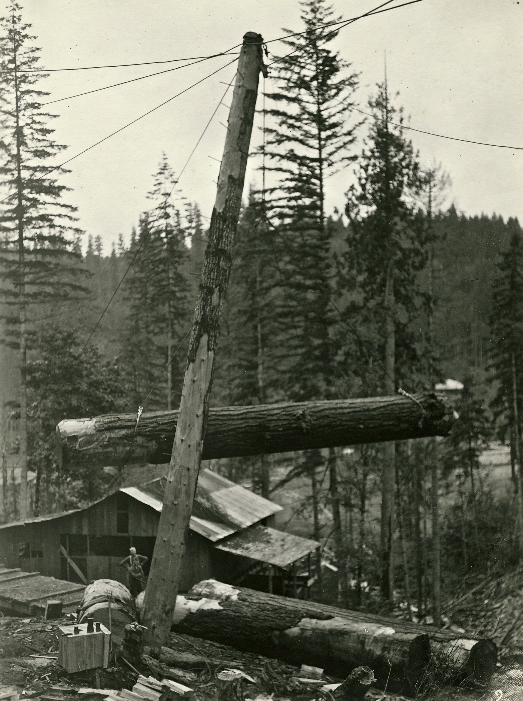 Charlie (Charles) Beottcher was well known as a logger in the Alder area. Here’s shot of him moving logs. At the base of the pole you can see where he (or someone) has been splitting. There are a variety of splitting malls.