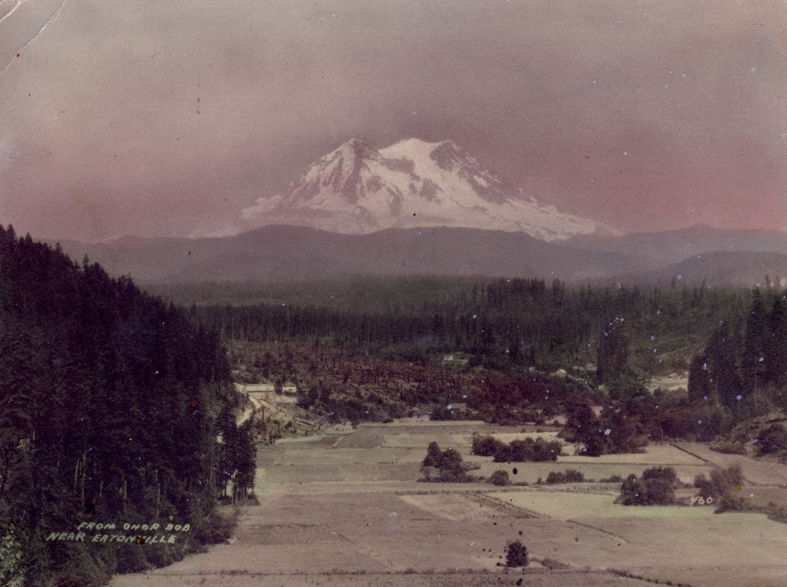Martha Parrish was quite an artist and did a number of paintings, including one of Ohop Valley. This picture is the one she used for inspiration and sat in her studio for years. You can even see the paint thinner splashes.