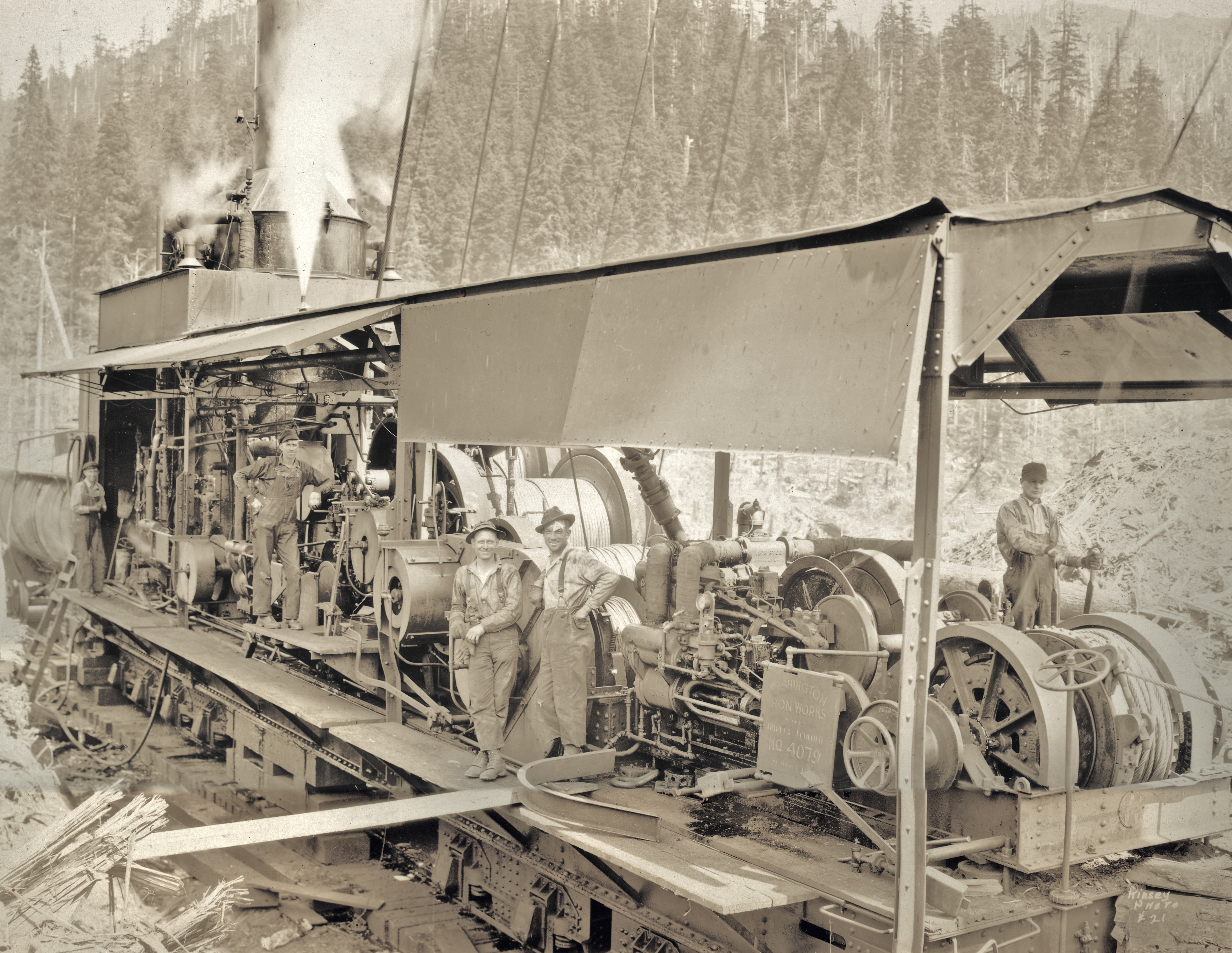 These shots of Pacific National Lumber Co., out of National, Wash., abnd Westfork Timber, out of Mineral, Wash., were taken by renowned photographer Kinsey in 1926 and 1928. He (and his brother) were able to catch the loggers, the forests  and the logger’s life like no other photographer.