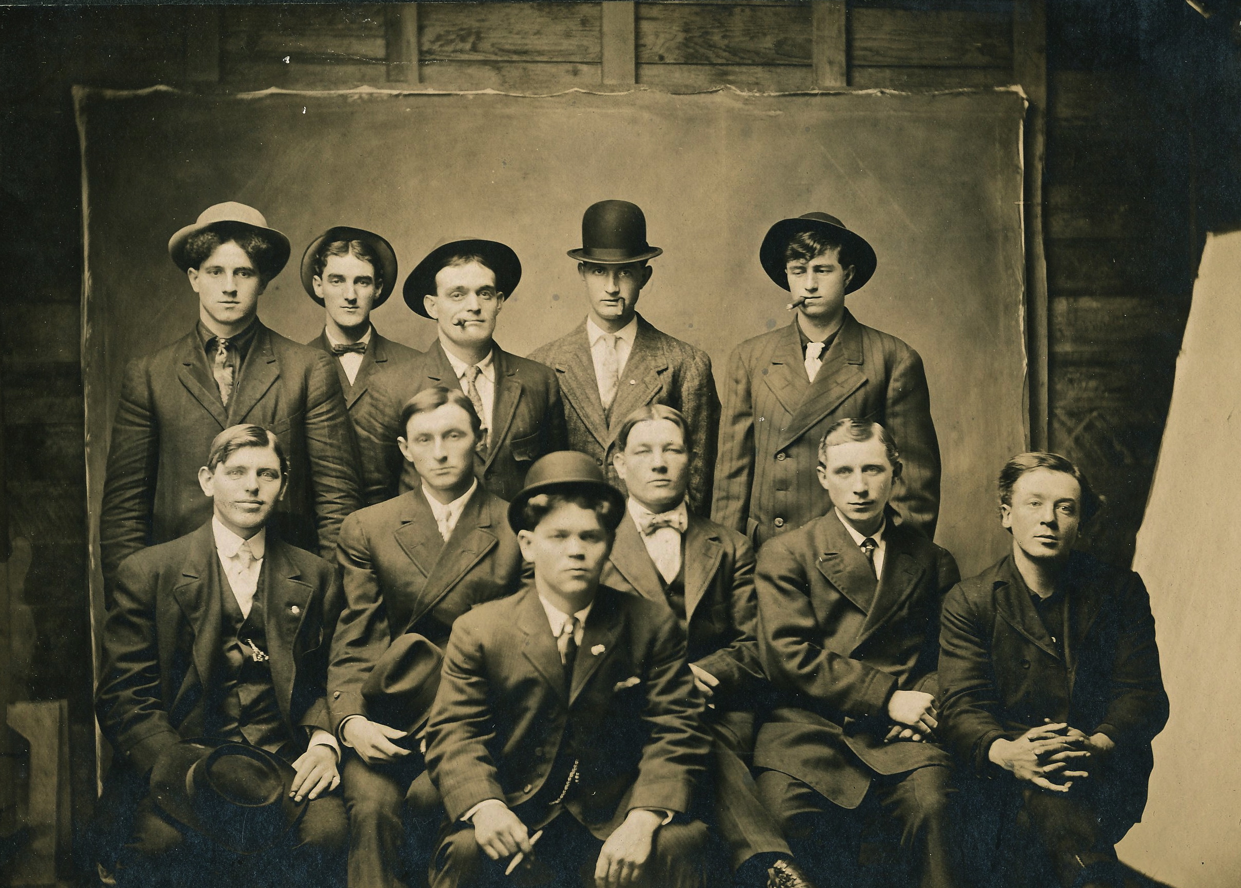 This fabulous shot comes from the Smith family. The only men named here are: Front Row Rudolph Fitzer and Arthur Fredericksen. If anyone can shed light on the other guys, please let me know.