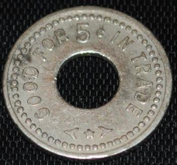 Another man said, “I’ve heard that those were used in slot machines in bars. To get around the gambling prohibition, the machine would pay out in those tokens, which were supposedly redeemable only for merchandise. Unofficially, the bartender would give cash for them if he knew you well enough.”