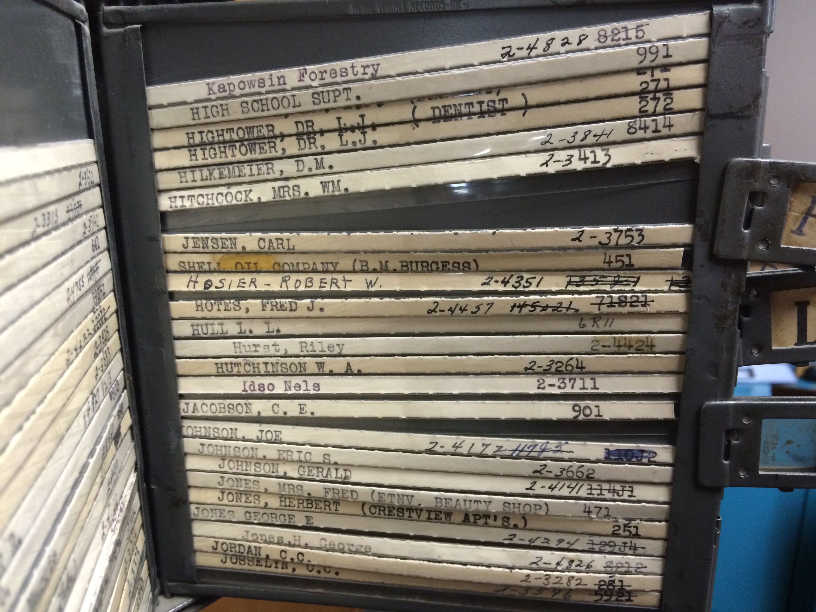 Long before it was Rainier Connect, it was Mashell Telephone Co. and a switchboard was used to connect the people around Eatonville. Here is the H, I and J page straight from the switchboard that went out of commission in the early 50s.
