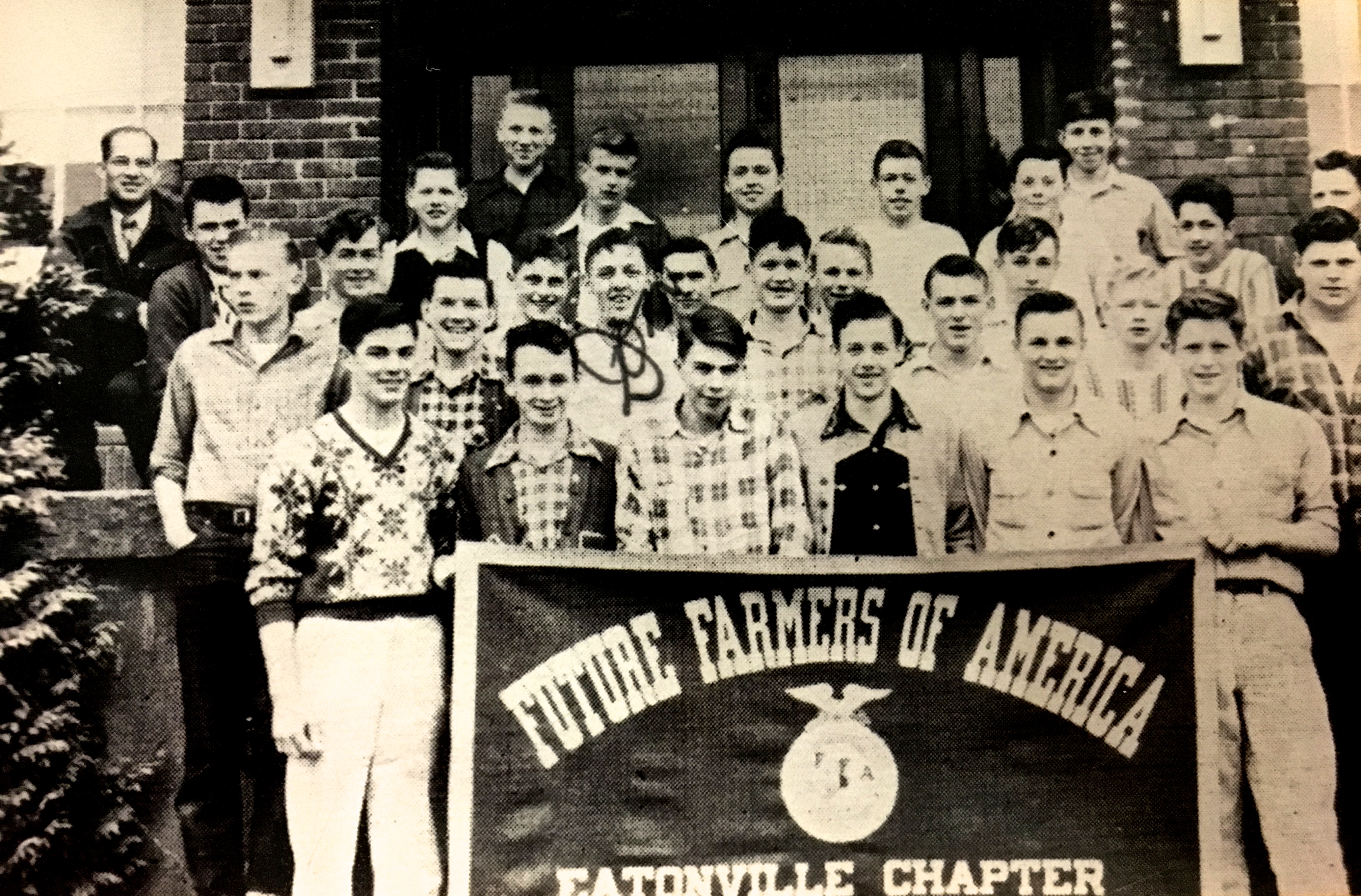This one of the FFA (Future Farmers of America) was probably taken around 1947. The guy in the top row, far left, is Louie Mettler. The young man right below him is Frank Hoffman. The others I don’t know. Please feel free share if you know their names.