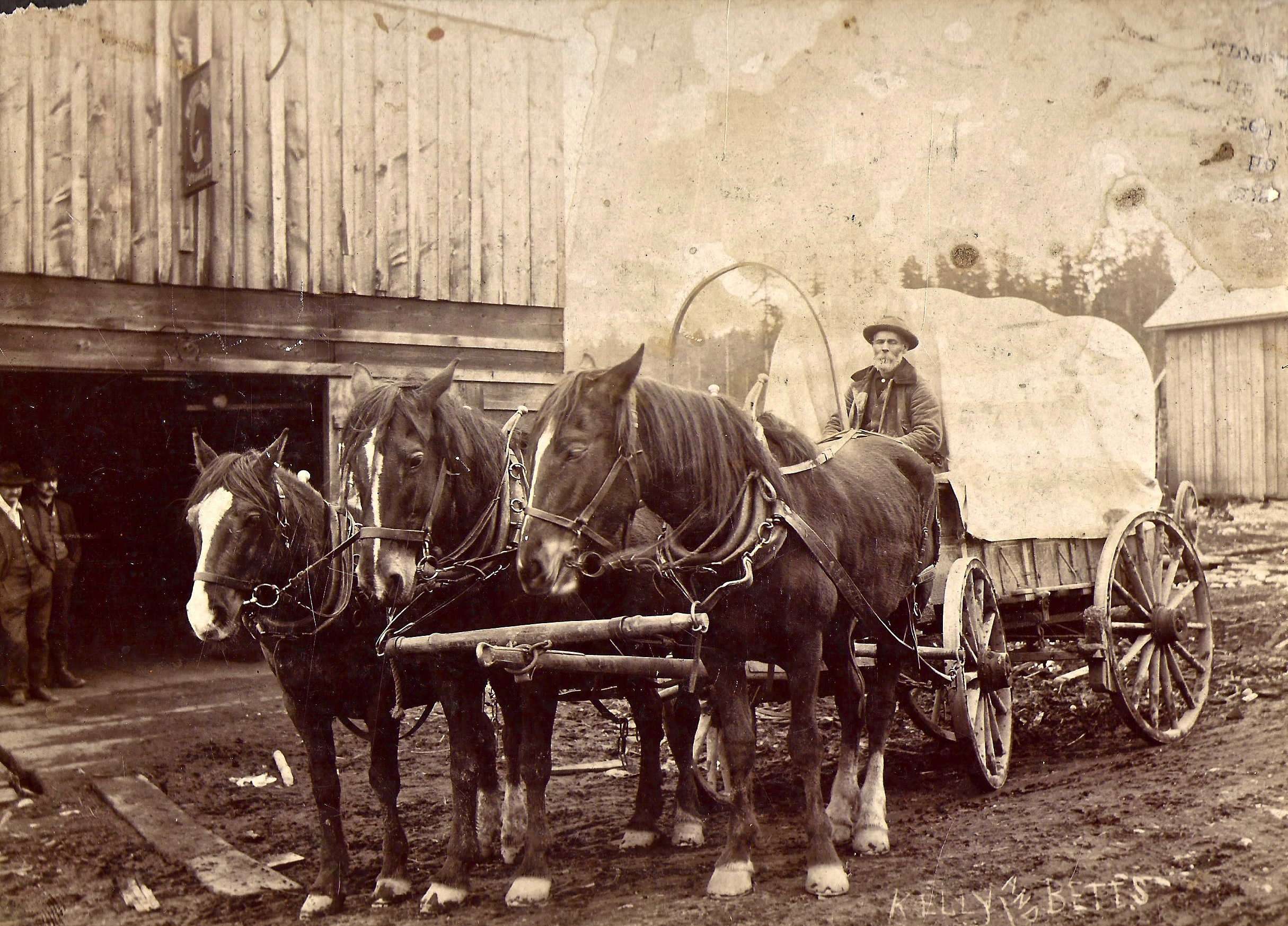 Fiander was a county road supervisor for a number of years, a perfect role for a man with draft horses. He helped another settler, Herman Anderson, lower his wagon straight down the side of Ohop Valley to his homestead claim by use of a rope, a stump for a hitch, and his oxen team.