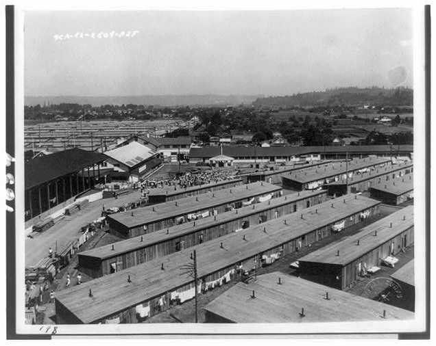Then [they] rounded up like so many cattle and, in our area, sent to the Puyallup Fairgrounds where some military genius with a perverse sense of reality named the place of heartache, Camp Harmony (Dixie Walter).