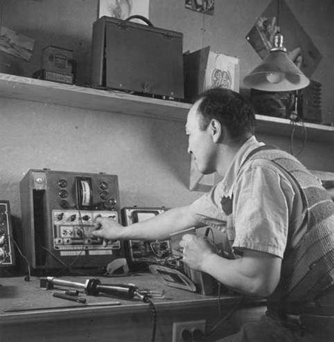 Chester Sakura Radio Repairmen. Former resident: Eatonville, Washington (Walter).Chet Sakura. (Photo by Stewart Frances, Dec. 19, 1943)