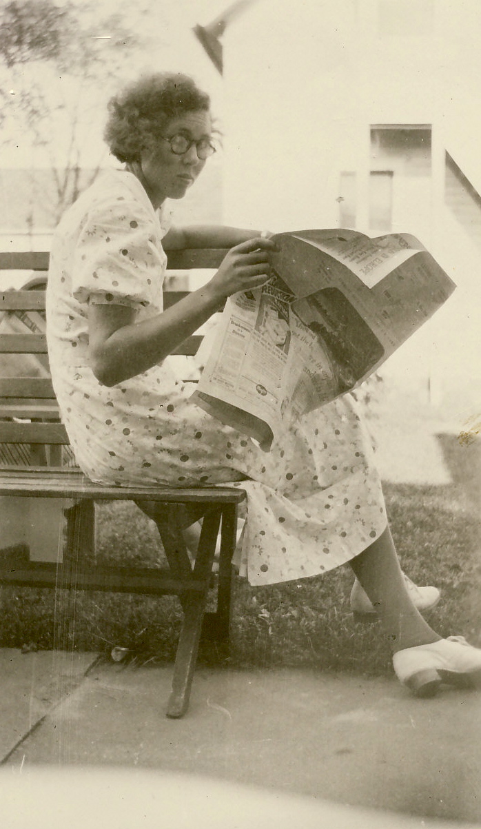 Love this candid shot of Helen Peterson reading the paper — maybe even The Dispatch. Taken 80 years ago, it feels like it could easily have been taken yesterday.